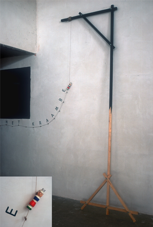 De kunstenaar aan het woord. De uiterlijke kenmerken van dit beeld zijn losjes gebaseerd op het spelletje galgje, waarbij een woord moet worden geraden. De spelregels zijn iets gewijzigd; raad een hele zin bestaande uit zesentwintig posities.
